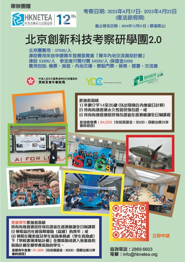 | 北京創新科技考察研學2.0 | 香港新興科技教育協會 | Download Here | 2024-12-31 |