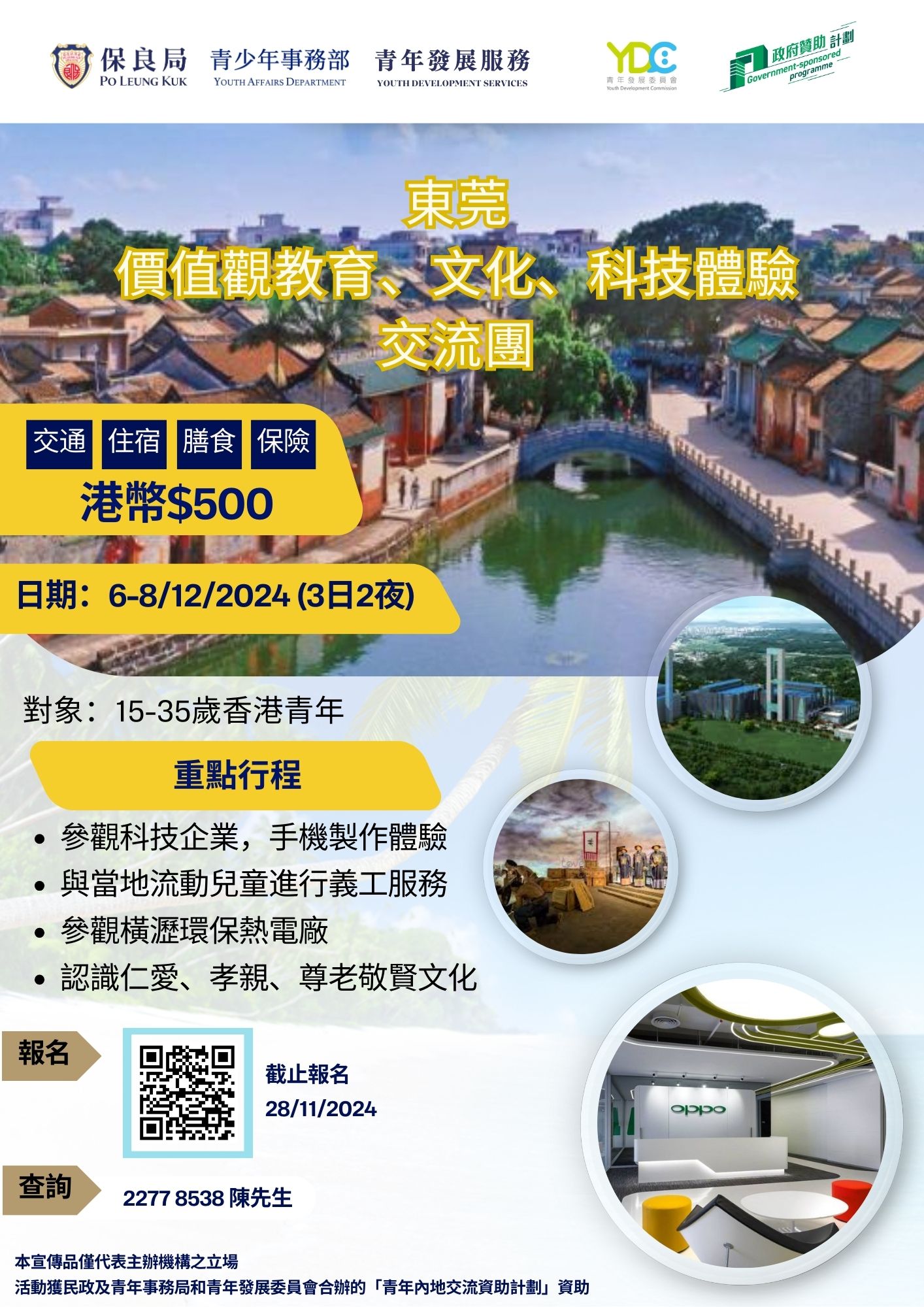 | 東莞價值觀教育、文化、科技體驗交流團 | 保良局青少年事務部 | Download Here | 2024-11-28 |
