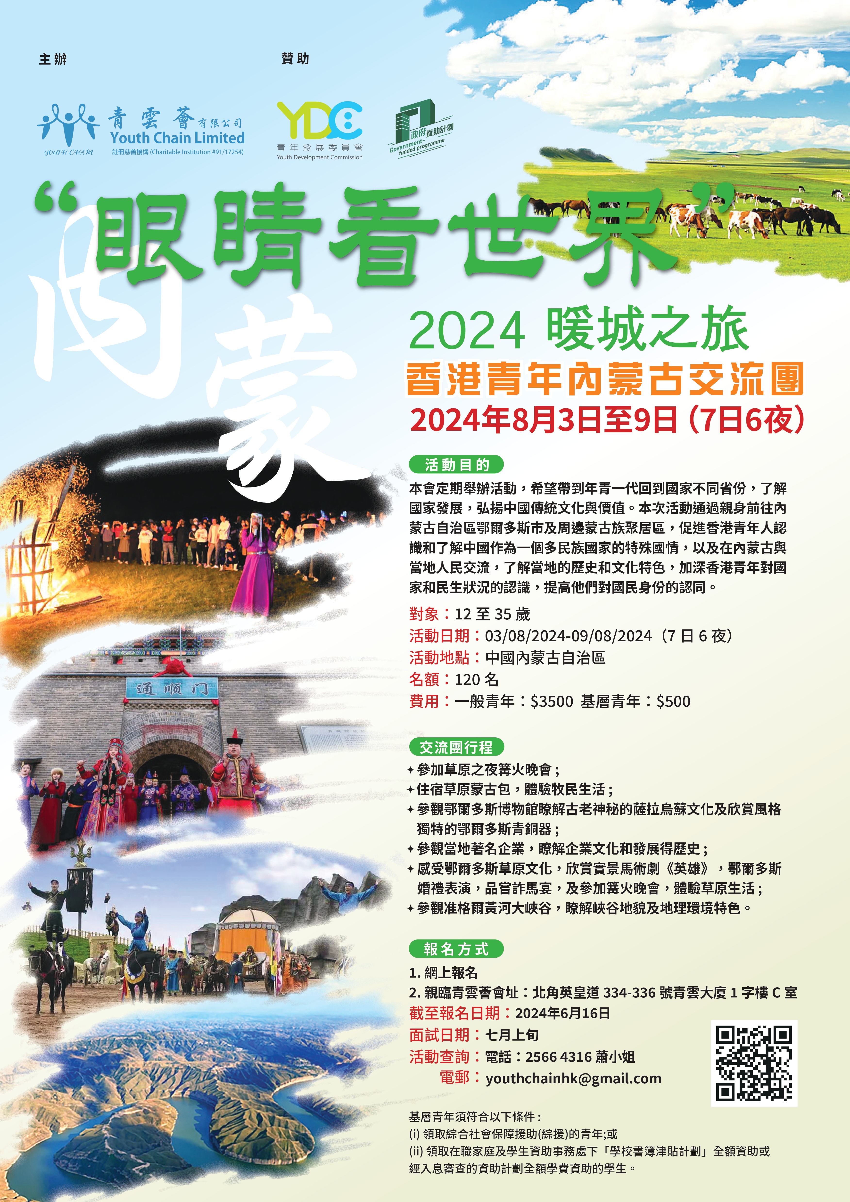 | 「和你一起」遊內蒙 | 青年內地交流資助計劃 | Download Here | 2024-1-15 |