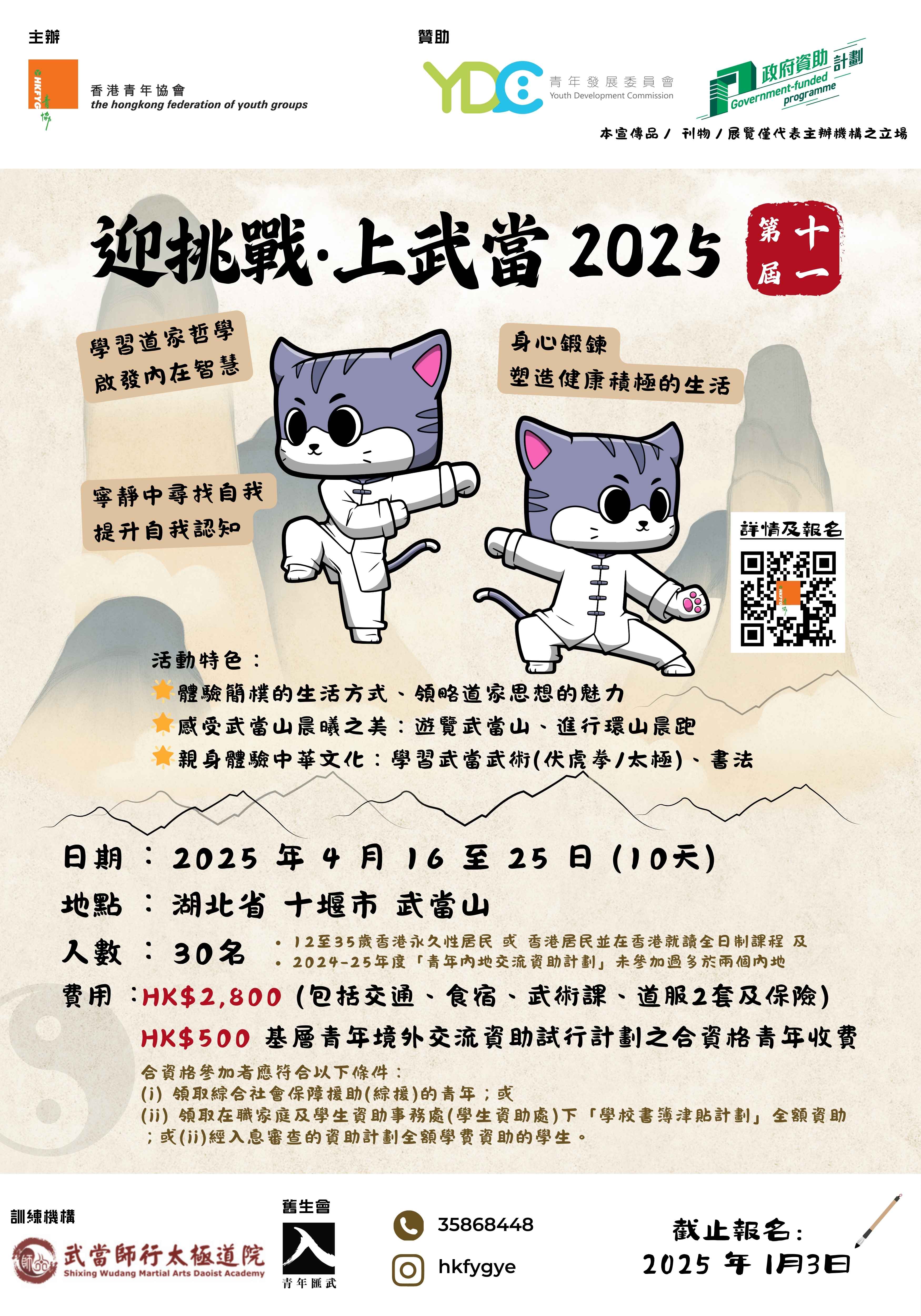 | 「迎挑戰 ‧ 上武當」2025 | 香港青年協會 | Download Here | 2025-1-3 |