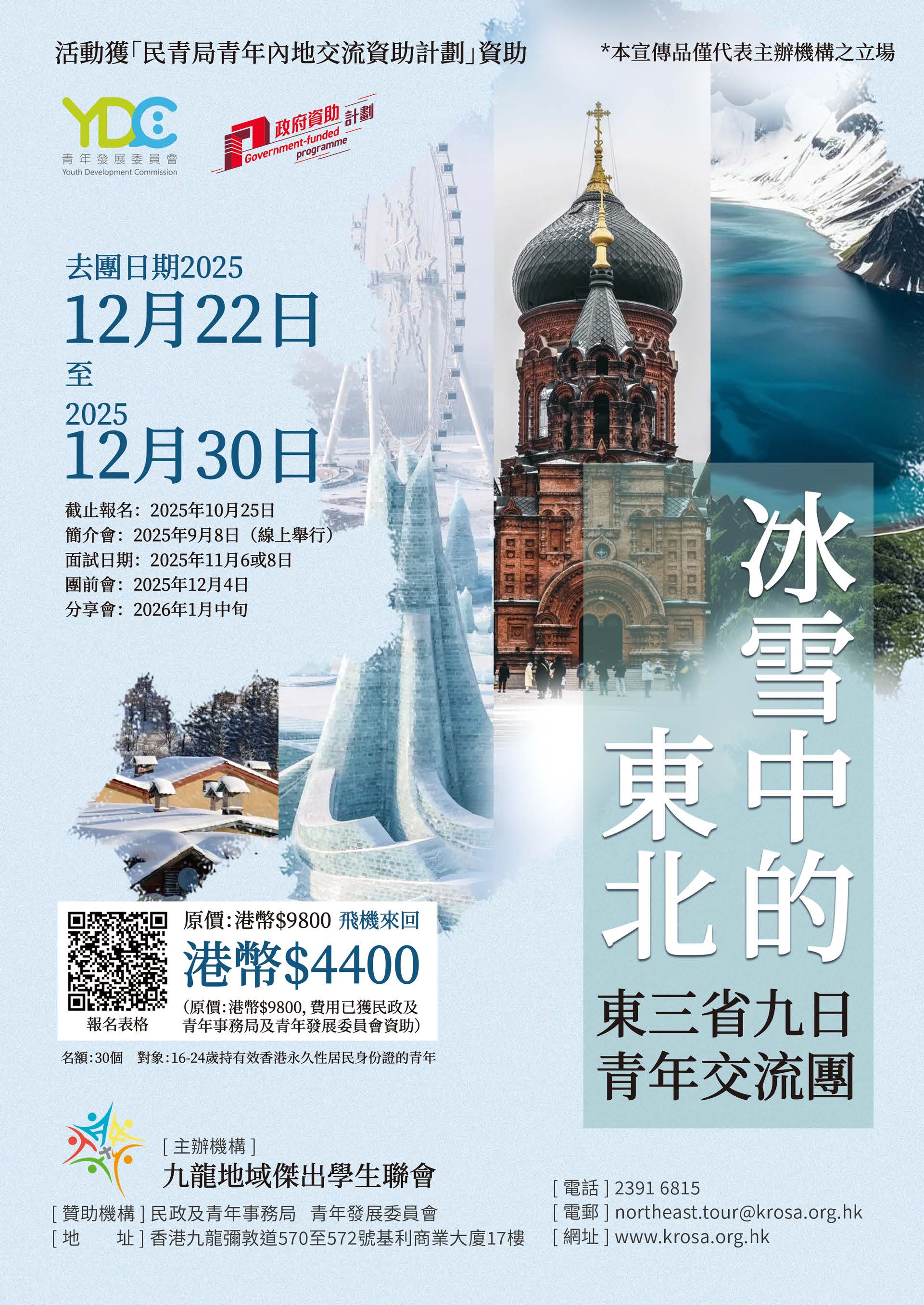 | 冰雪中的東北 —— 東三省九日青年交流團 | 九龍地域傑出學生聯會 | Download Here | 2025-10-25 |