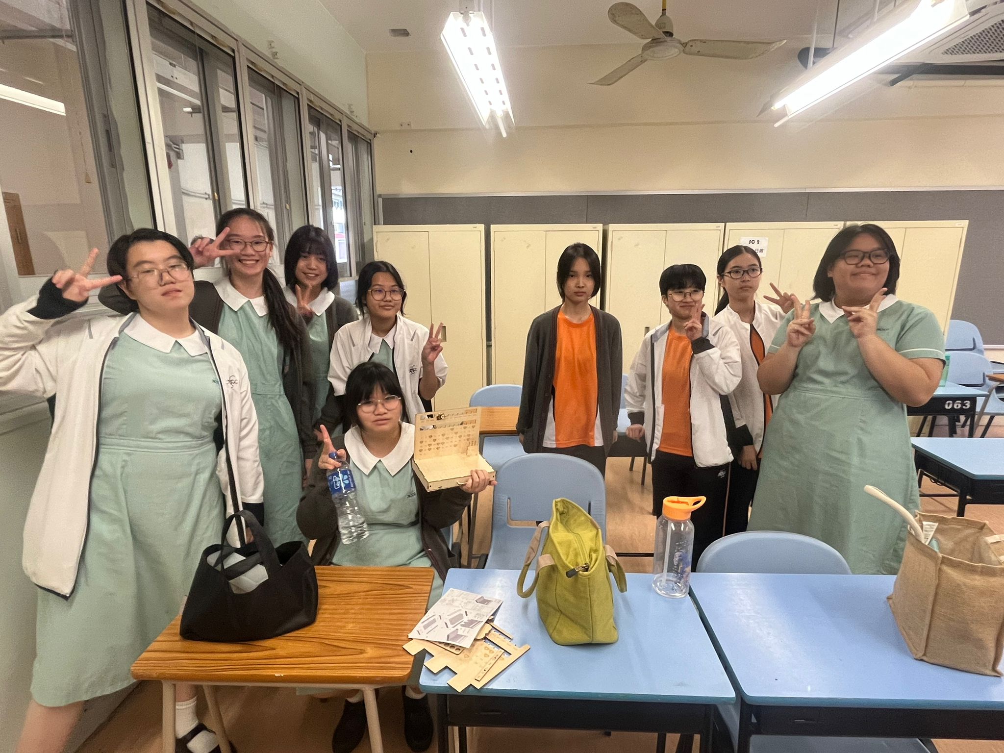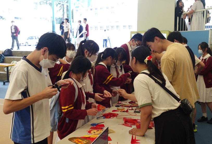 服務隊成員教導校內其他同學製作金魚吊飾,在探訪當日致送給長者,以表心意。