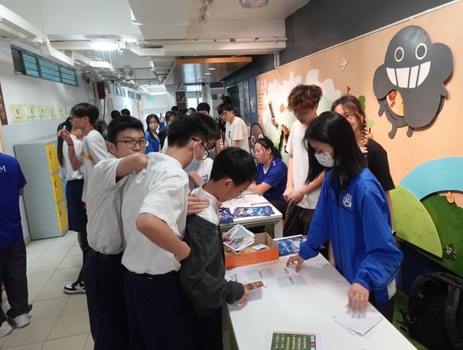 服務隊成員在中六加油站派發打氣小禮物,並組織了攤位遊戲,考驗了同學的即場反應和記憶力,讓大家在輕鬆的環境中互相交流。