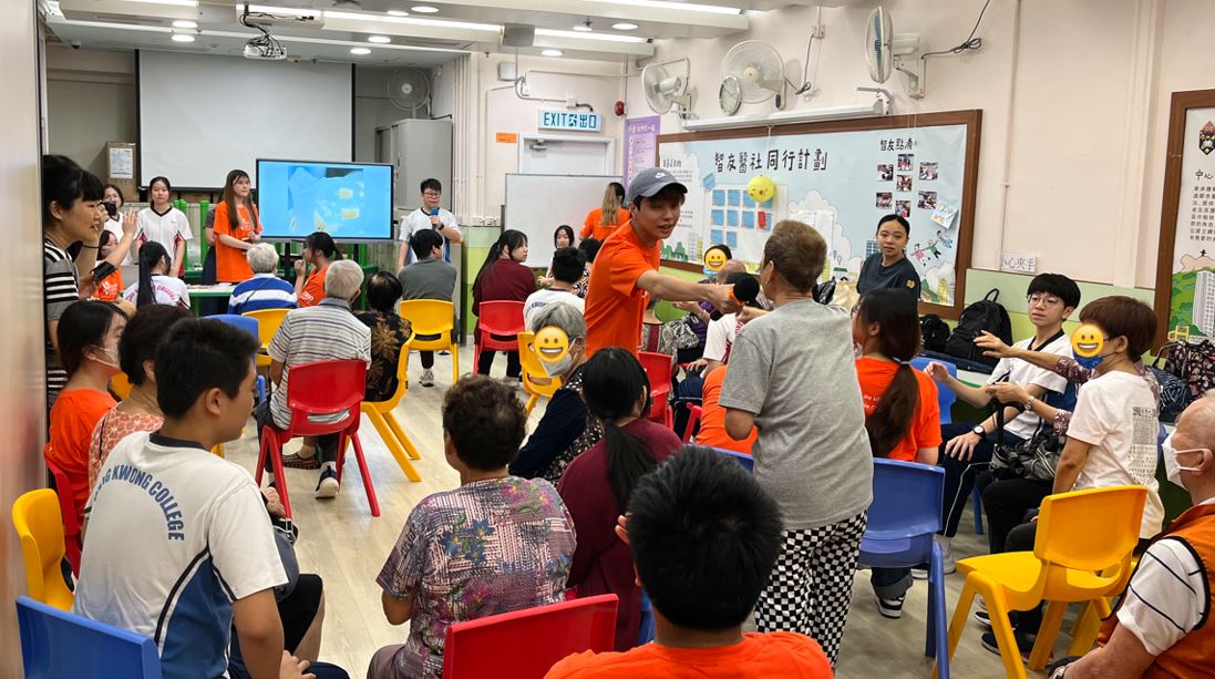 服務隊到香港耆康老人福利會懷熙葵涌長者地區中心探訪長者,一同參與互動遊戲,送上福袋和祝福。