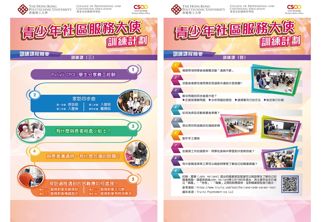 專業導師為學生提供志願服務相關的培訓,尤其在溝通技巧和解難能力方面。