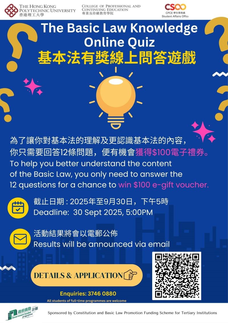 - The Basic Law Knowledge Quiz: To evaluate and enhance participants' understanding and knowledge of the Basic Law, fostering informed citizenship and civic engagement.