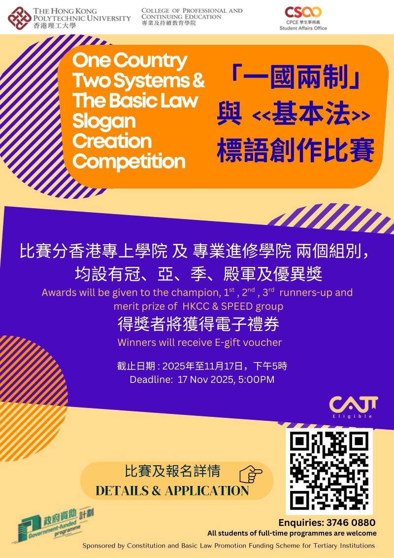 The One Country Two System & The Basic Law Slogan Creation Competition took place between October and November 2025, with submissions received from 50 participants.