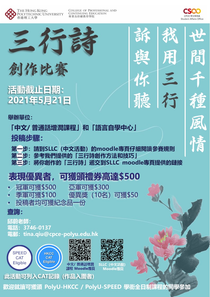 最新活動 - 三行詩創作比賽 2021-05-21