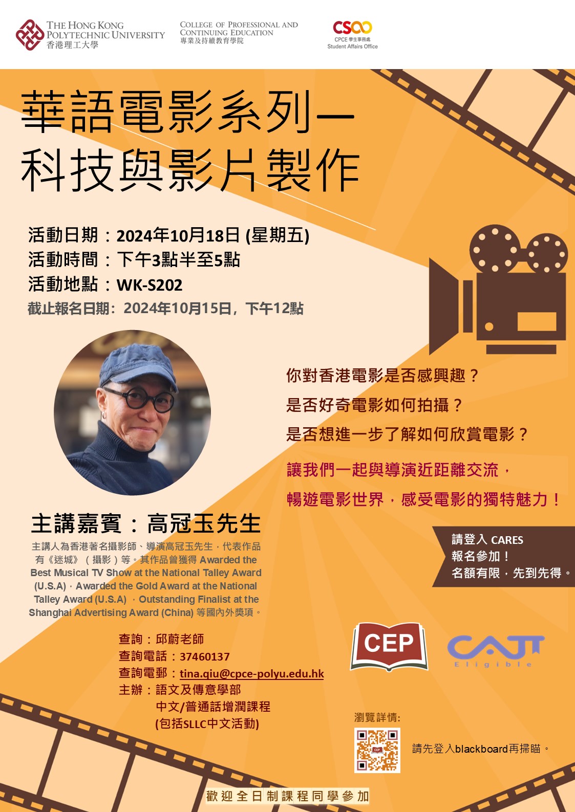 最新活動 - 華語電影系列:科技與影片製作 2024-10-18